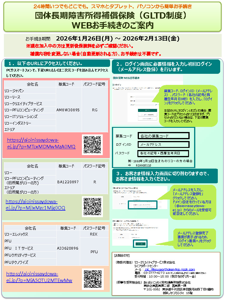 本籍が下記会社に属されている方且つ『正社員』の方で補償開始時点(2026年3月1日)で満59歳以下で、告知日時点で正常に勤務されている方のみご加入頂けます。